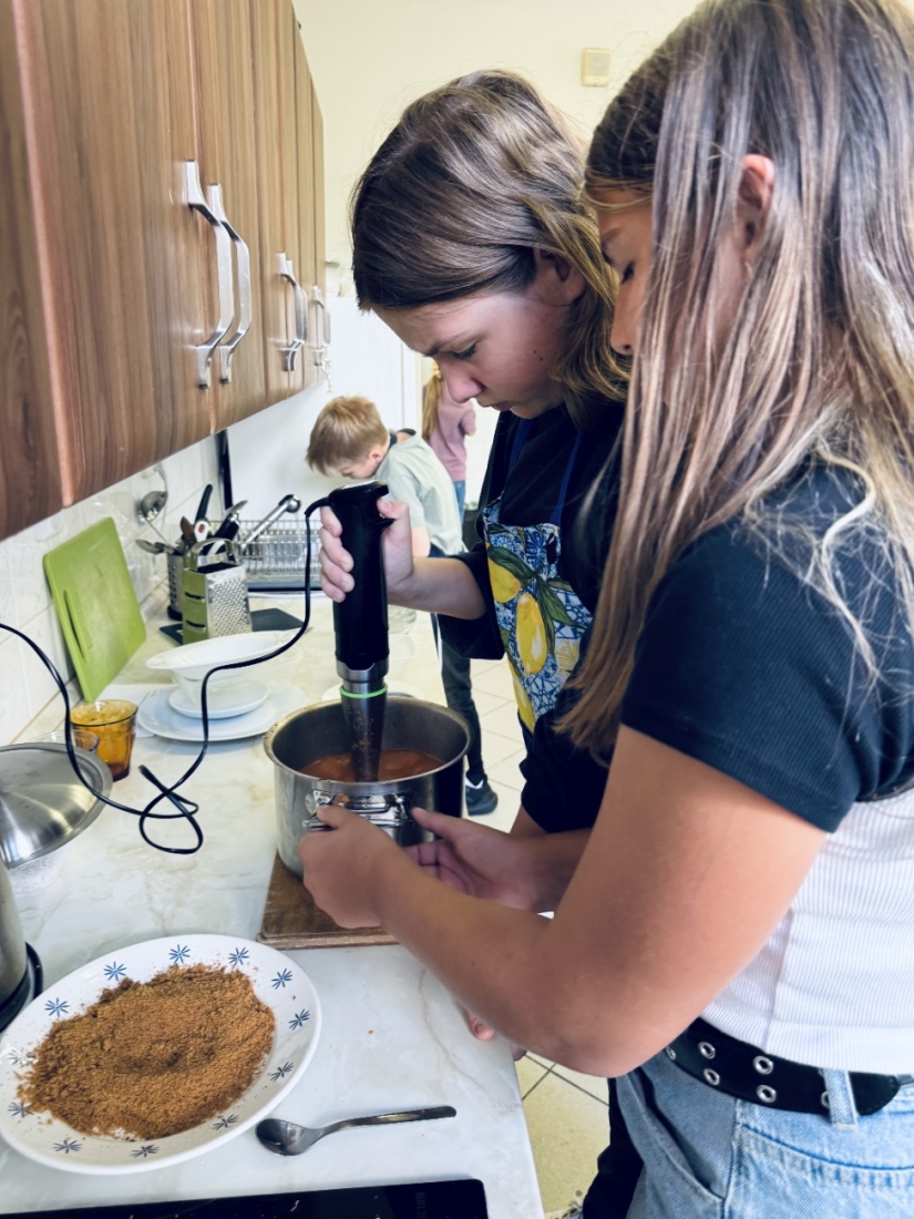 Na druhé lekci jsme se pustili do jedné z nejoblíbenějších dětských klasik – rajské polévky. Děti ji zbožňují, a proto jsem ji zařadil i do našeho programu, aby si mohly vyzkoušet, jak se tahle dobrota připravuje.