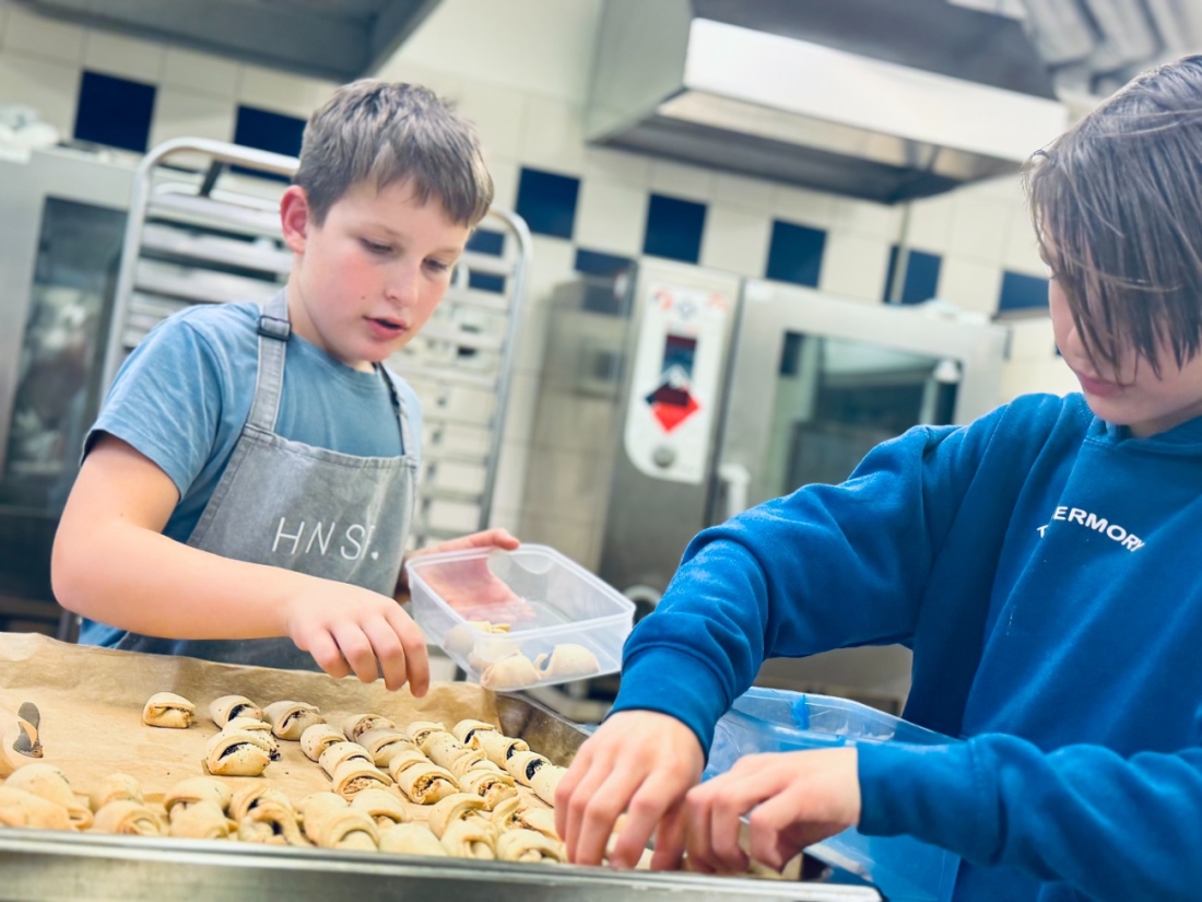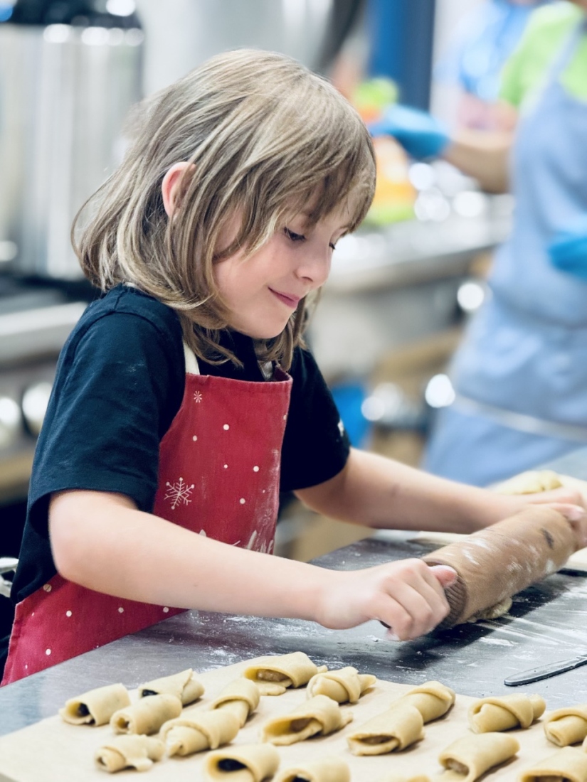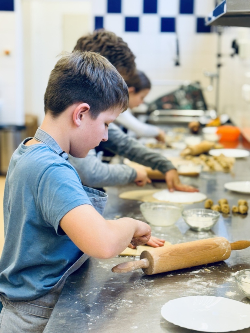 Čtvrtá lekce byla ve znamení tradice. I když se snažím každý rok zařazovat nové recepty, svatomartinské rohlíčky prostě nesměly chybět! Tentokrát jsme připravovali dvě varianty náplní – ořechovou a makovou, aby si každé dítě našlo svého favorita. Pekli jsme tentokrát ve velké školní kuchyni, kde máme přece jen více prostoru a pohodlí než v menších kuchyňkách. Děti si tak odnesly domů pořádnou dávku rohlíčků – věřím, že jste si na nich s chutí pochutnali!