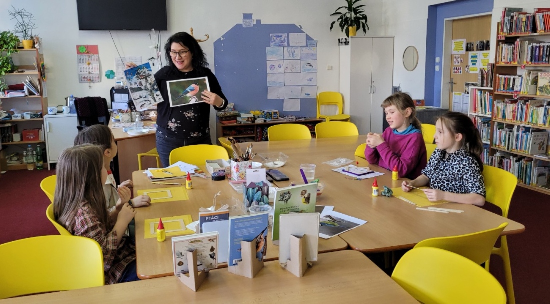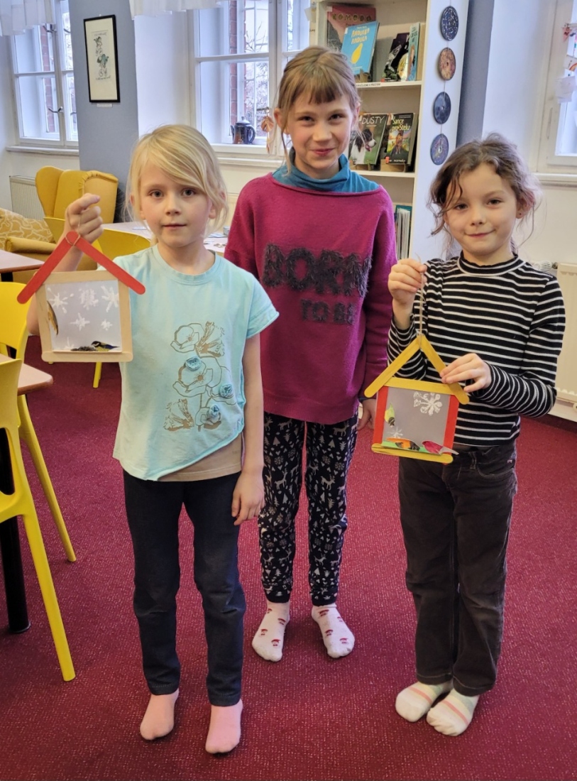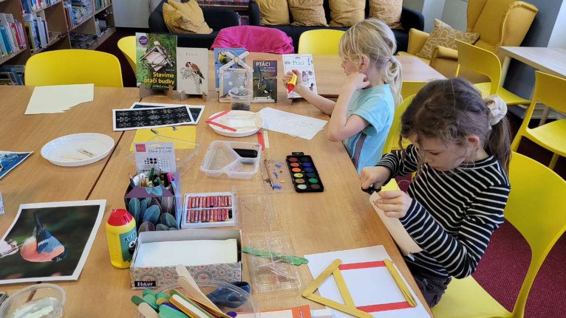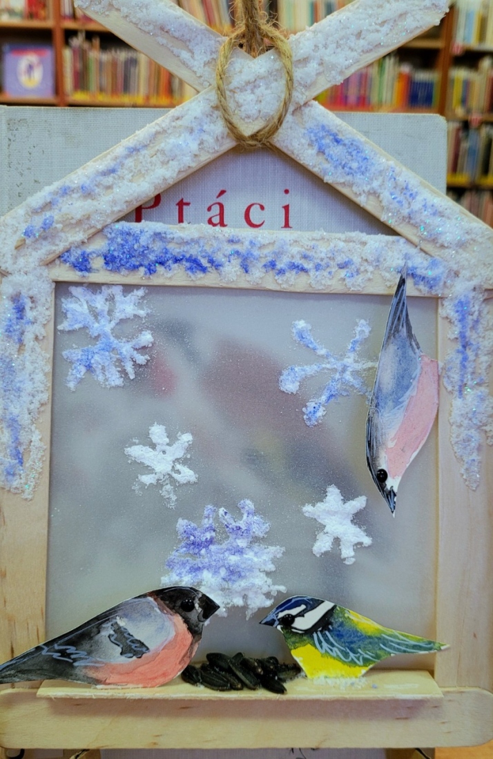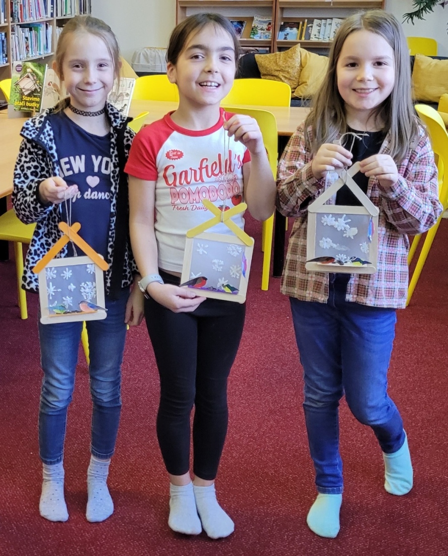 Na únorových dílničkách jsme stavěli krmítka pro ptáčky a povídali jsme si, kteří ptáci u nás přezimují a proč je dobré je v zimě přikrmovat například lojem a slunečnicovými semínky.