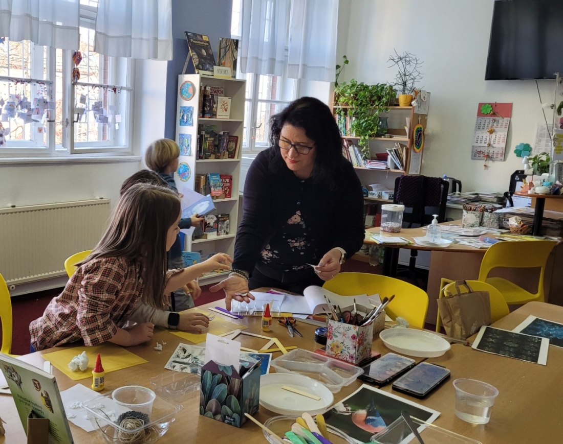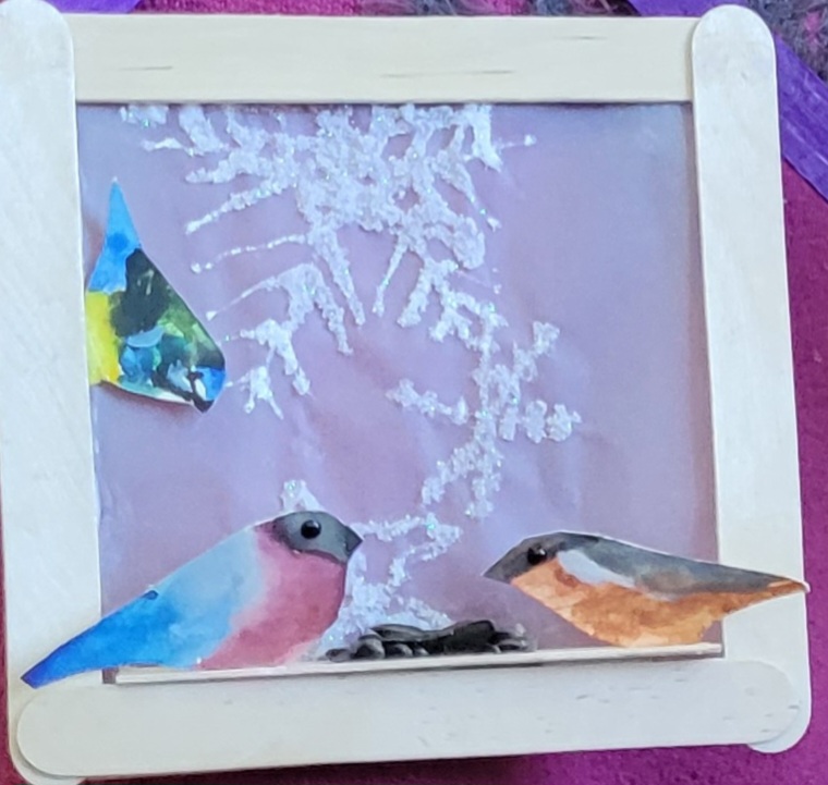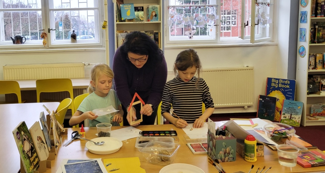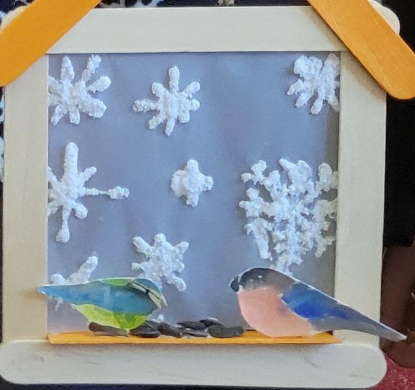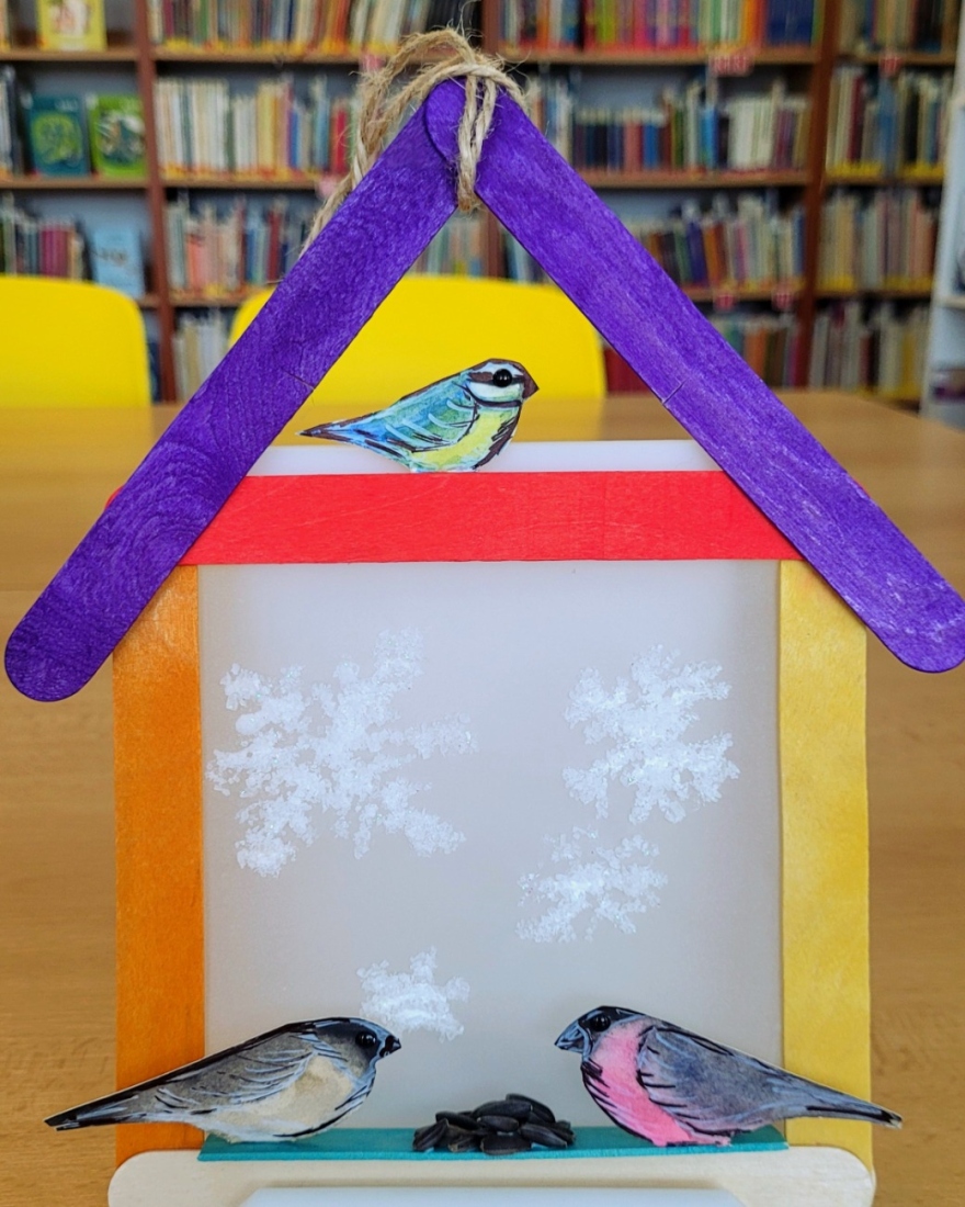 Na únorových dílničkách jsme stavěli krmítka pro ptáčky a povídali jsme si, kteří ptáci u nás přezimují a proč je dobré je v zimě přikrmovat například lojem a slunečnicovými semínky.
